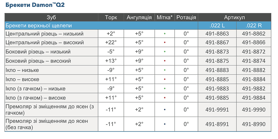 Втрата торку під час лікування – типова проблема при використанні незнімної ортодонтичної конструкції. Для зменшення цієї проблеми у системі Damon окрім стандартного пропису передбачені різні варіанти торку для брекетів передніх зубів верхньої та нижньої щелепи.